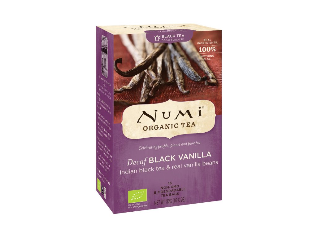 Tento černý čaj s pravými vanilkovými lusky je velice jemný a chutný. Celé vanilkové lusky jsou rozdrceny pouze pár minut před jejich zamícháním do bezkofeinového bio černého čaje, tento způsob zaručuje jedinečné aroma. Kofein byl odstraňován metodou CO₂, což je přírodní proces, při kterém se zachovává chuť i větší množství blahodárných látek. V odlehlých horských oblastech severní Indie se místní spolupracovníci Numi rozhodli použít své úspory pro stavbu škol, studijní stipendia a pro lékařský personál, který působí přímo na místě.